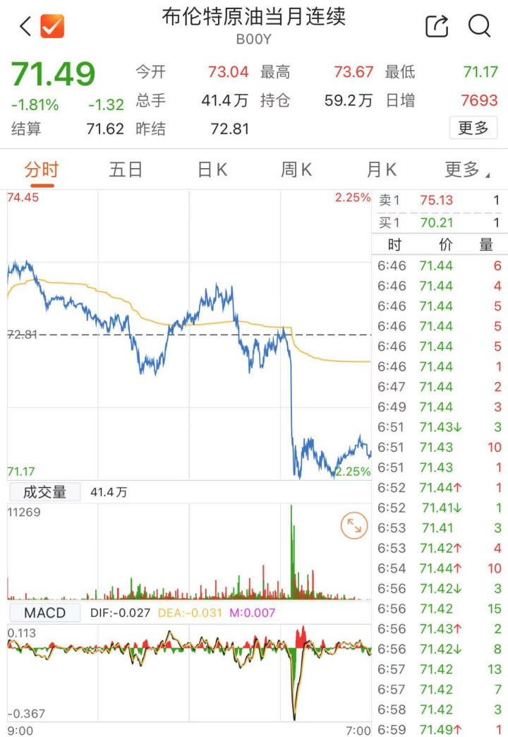 隔夜,原油市场也不平静。截至3日收盘,WTI原油期货跌1.85%,报68.47美元/桶;布伦特原油期货跌1.81%,报71.49美元/桶。